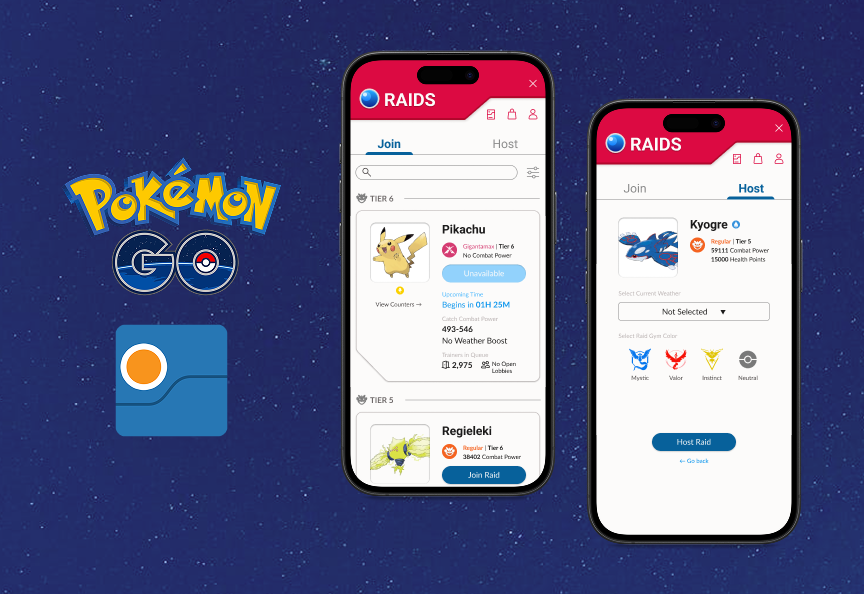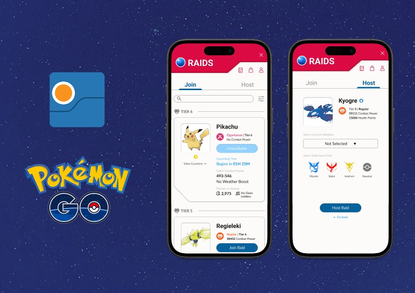 Redesigning the “Raid” section in the unofficial companion mobile app for Pokémon Go for a more intuitive and streamlined experience.