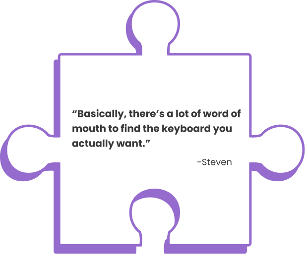 Participants felt difficulty understanding their own preferences. Subjective online descriptions with confusing jargon makes picking keyboard parts feel like a shot in the dark.