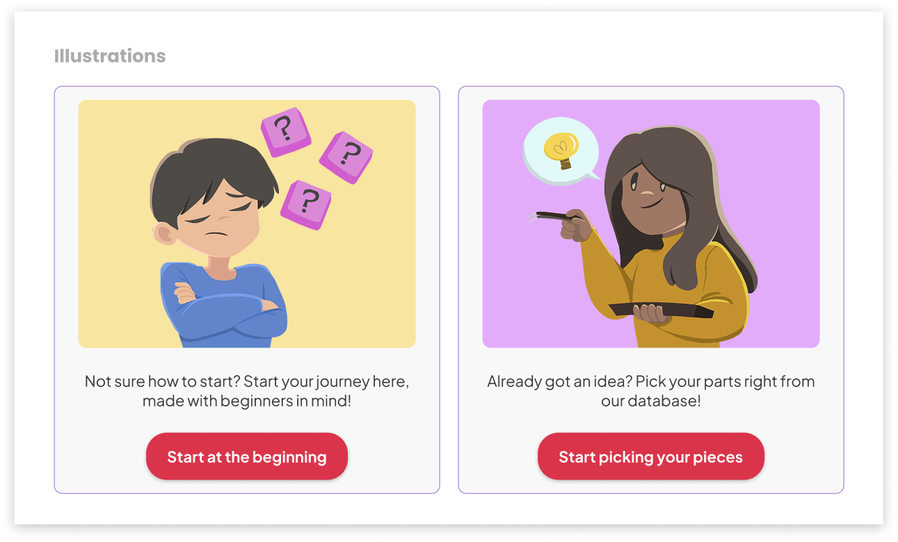 To alleviate these pain points, I introduced selection-based options, which allow users to catch a glimpse of available options visually and audibly. Included are short informative explanations, defining unfamiliar terms without needing users to search it up themselves.