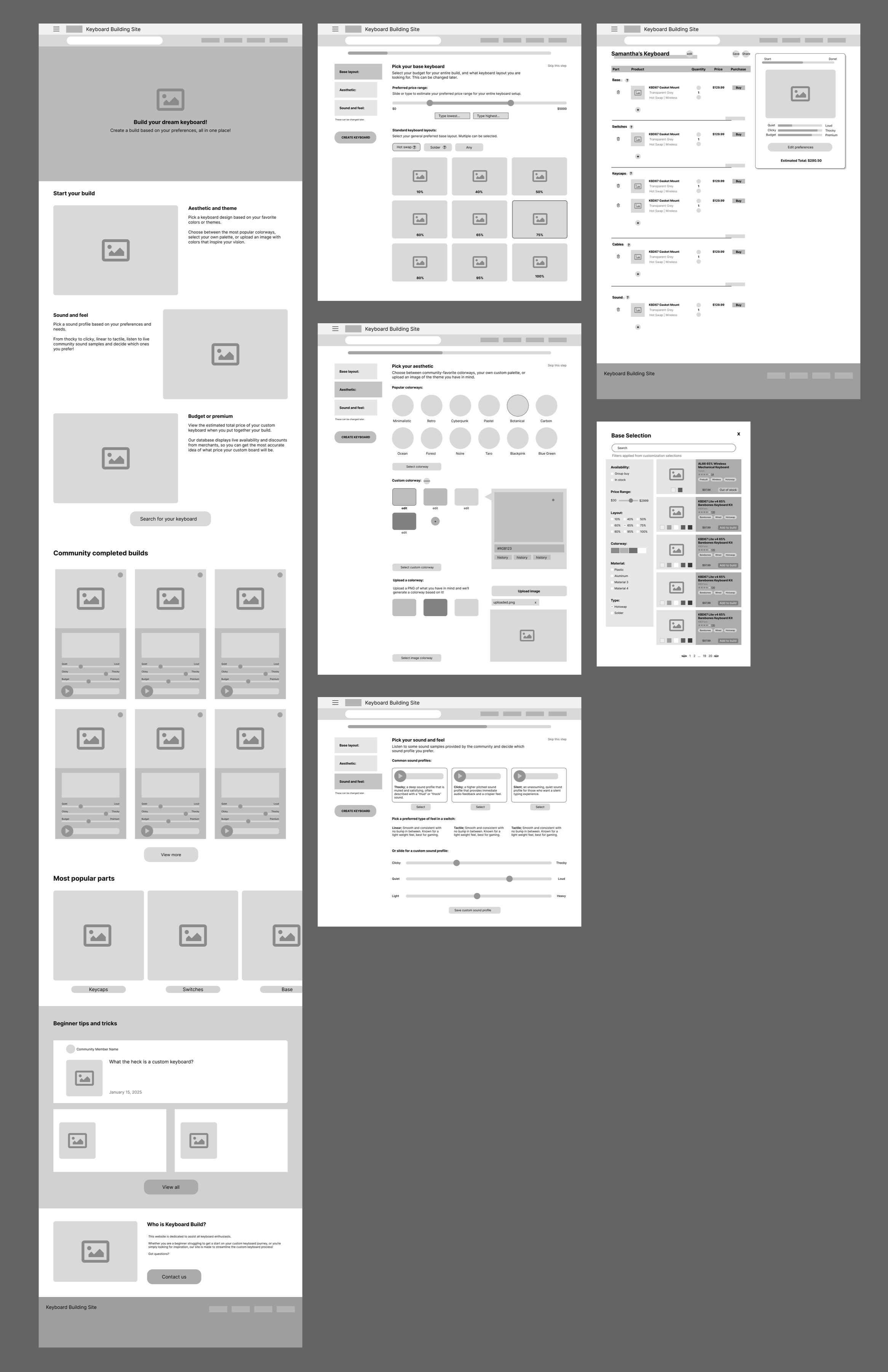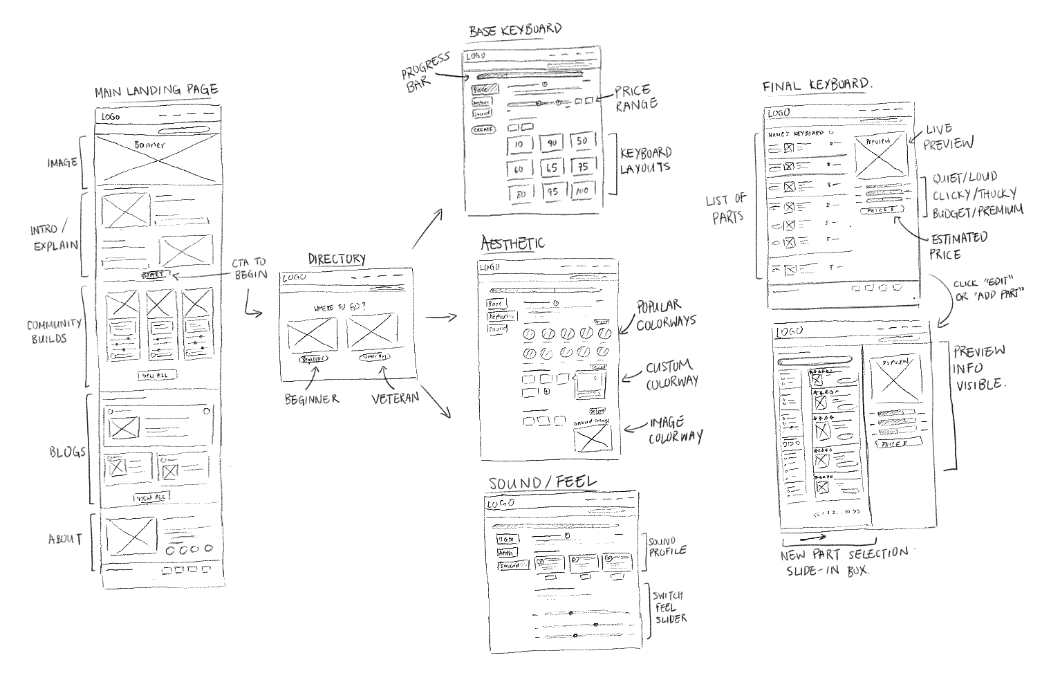 I focused on making the user flow accessible and simple. Based on user insight, technical jargon detracts from the excitement of picking parts to build a keyboard. Making the site feel welcoming was my first priority.