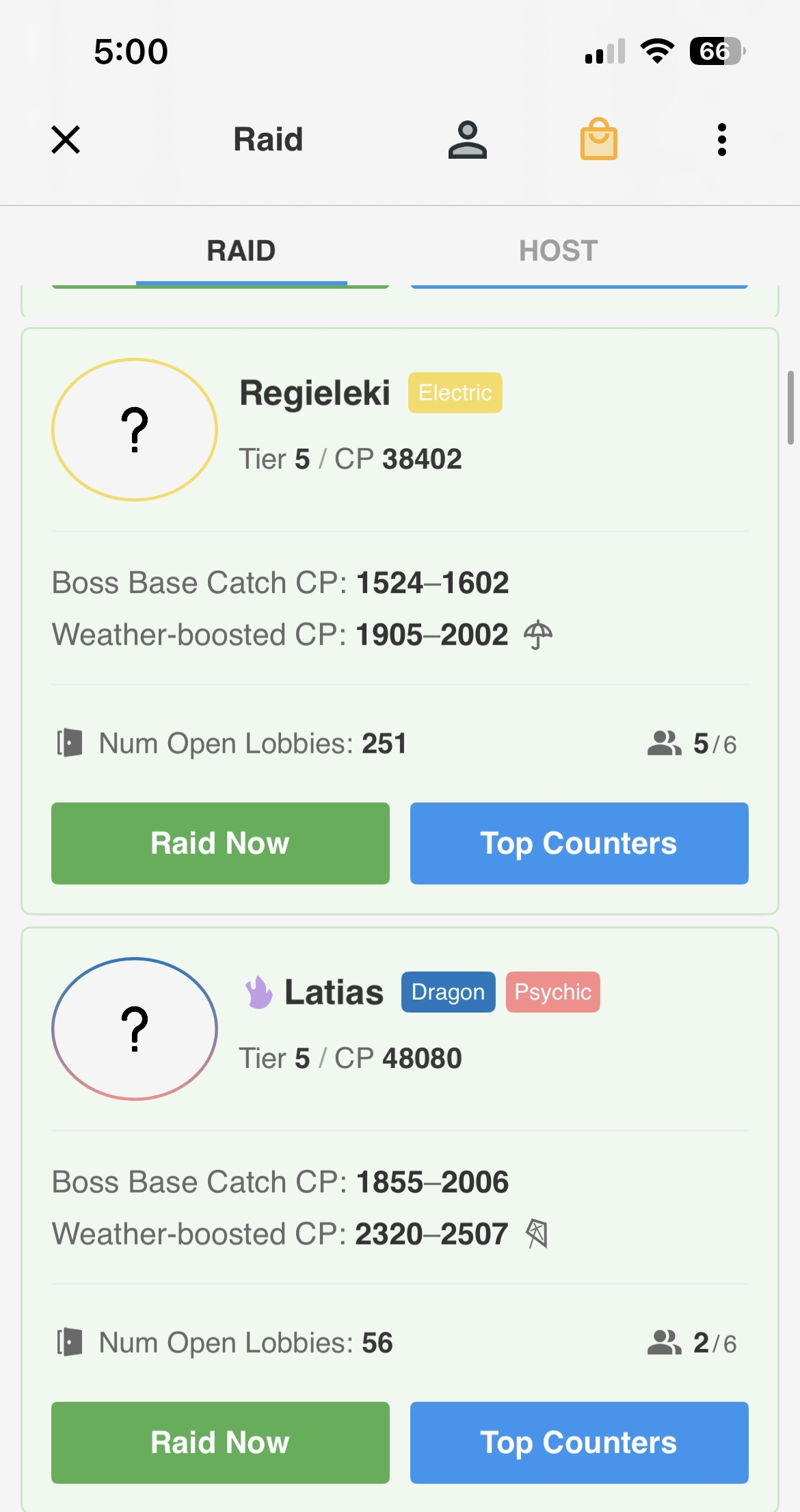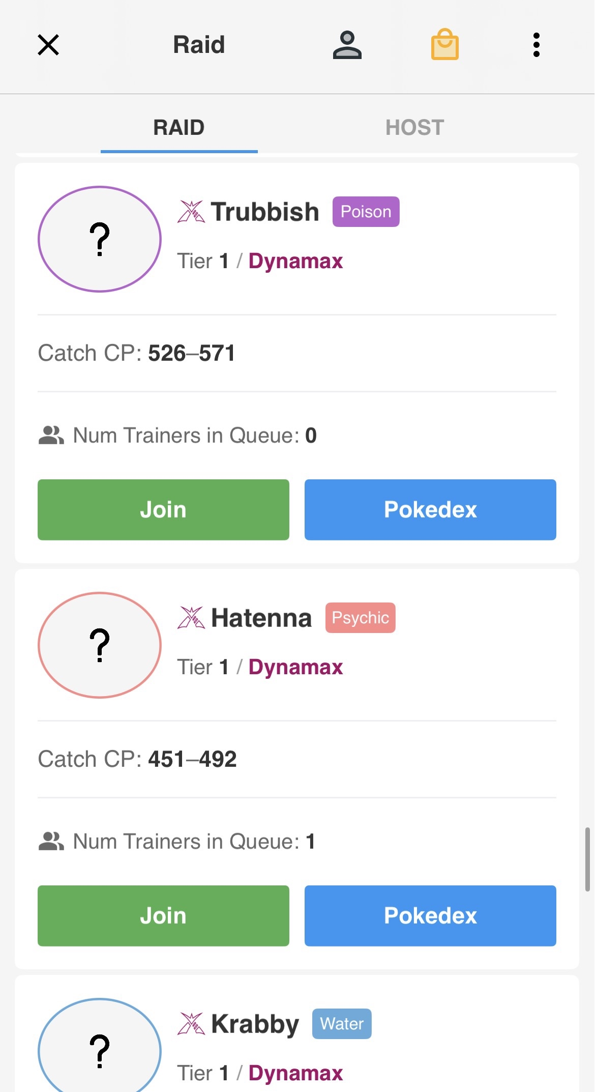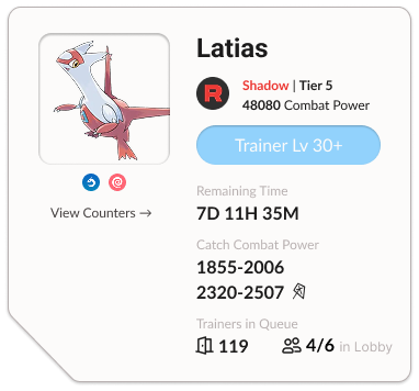 Individual raid listings on Poke Genie