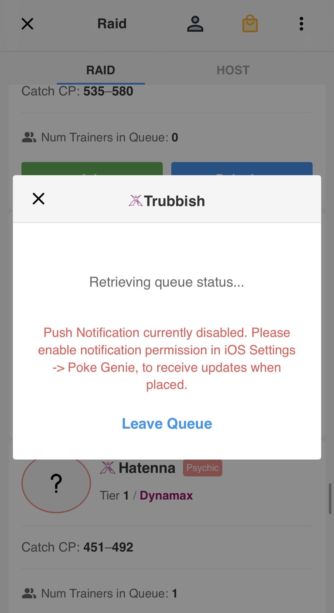 3/5 users expressed that they didn’t mean to join a raid in Poke Genie, but were thrown into a queue they could not abandon without a penalty.